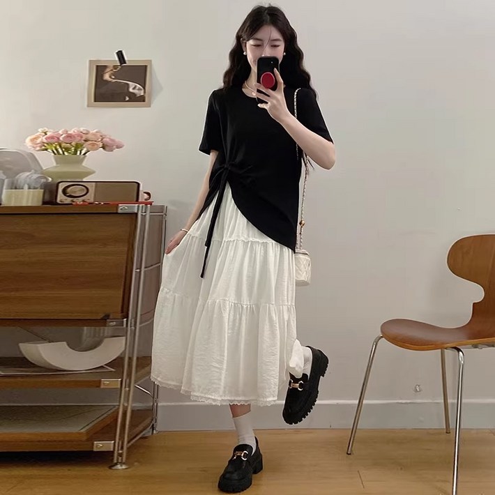여름 여자 데일리룩 캐주얼 맨투맨 치마 투피스 빅사이즈 루즈핏 하객룩 롱 스커트 세트
