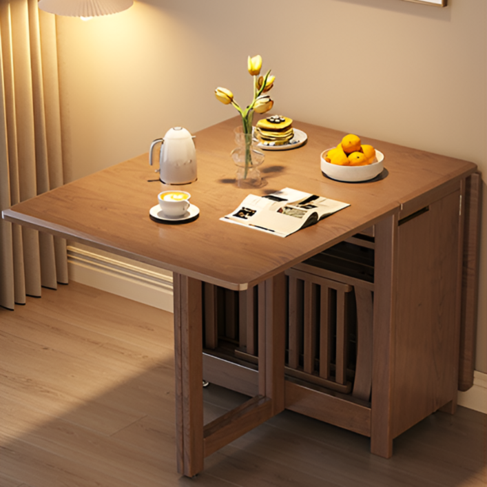 폴라오 확장형 접이식 식탁세트 수납 거실 테이블, 식탁단품, 월넛 120cm