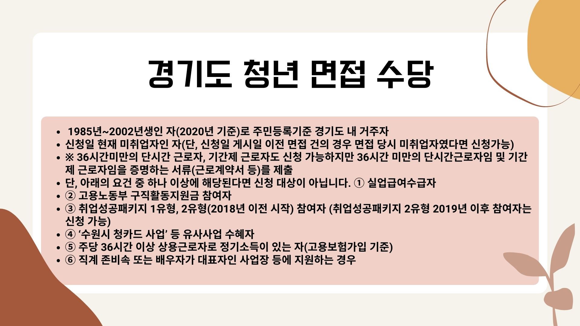 아래에서 자세한 조건은 확인후 면접 수당 대상자인지