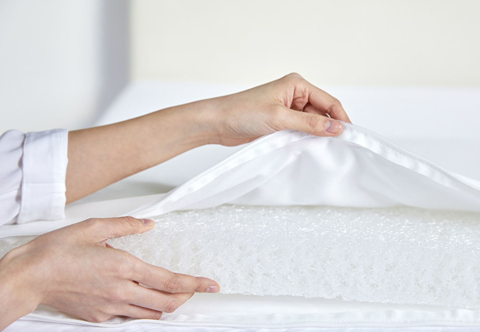 3.3. 위생적인 관리 몽제 매트리스는 겉커버와 내장재 모두 세탁이 가능합니다.