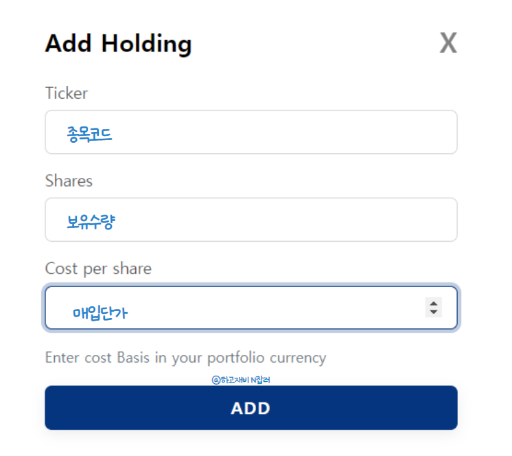 내가 가진 주식들의 정보를 입력하면