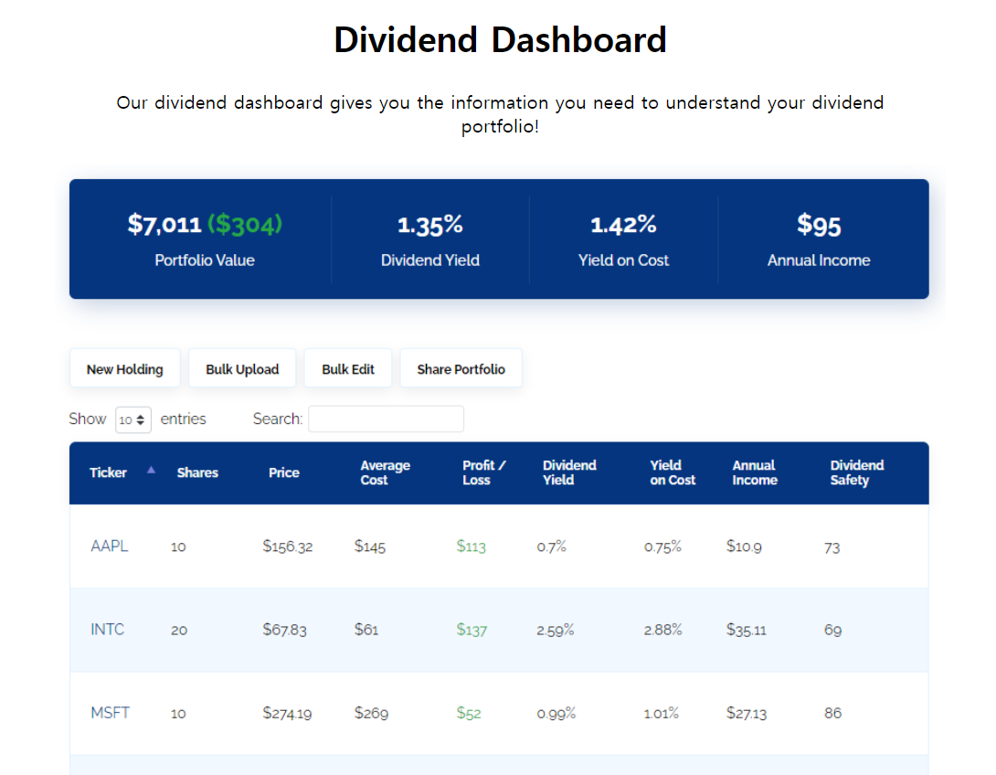 내가 가진 주식정보들을 저장해서 배당금 조회가 가능합니다.