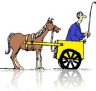 말앞에 카트를 타지마라라는 말인데 우리말로 주객전도의 뜻입니다.