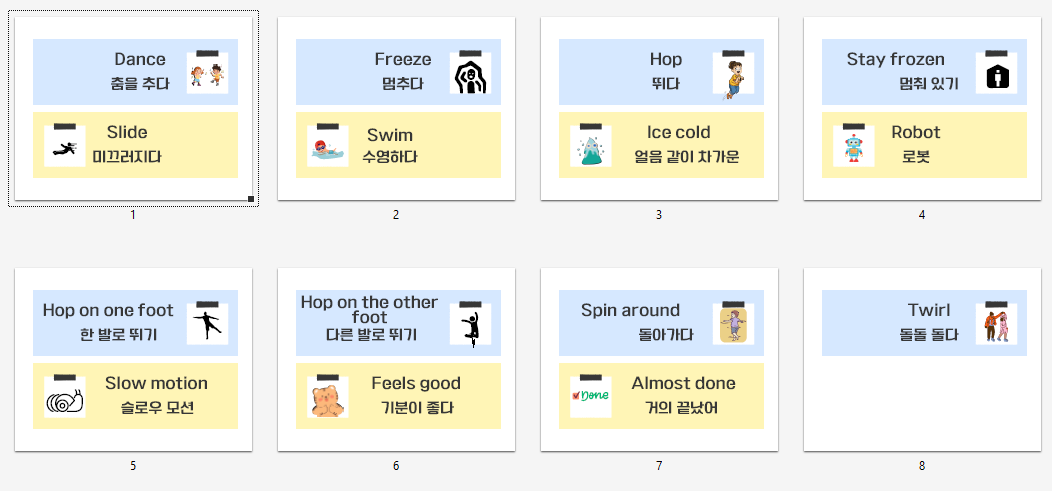 Dance | 춤을 추다 | Slide | 미끄러지다 |