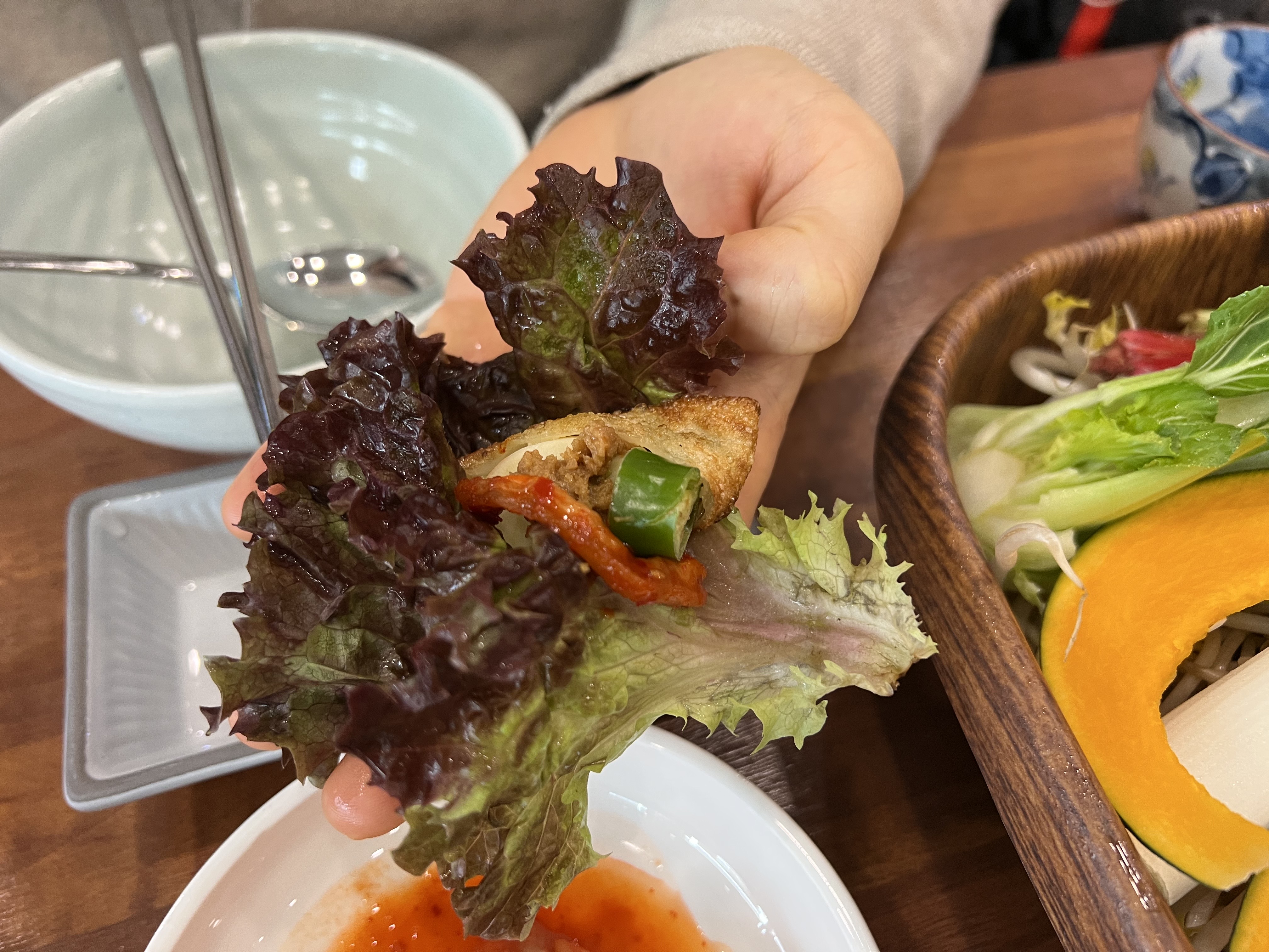 만두를 고기대신에 보쌈처럼 먹었는데 맛있었습니다 !