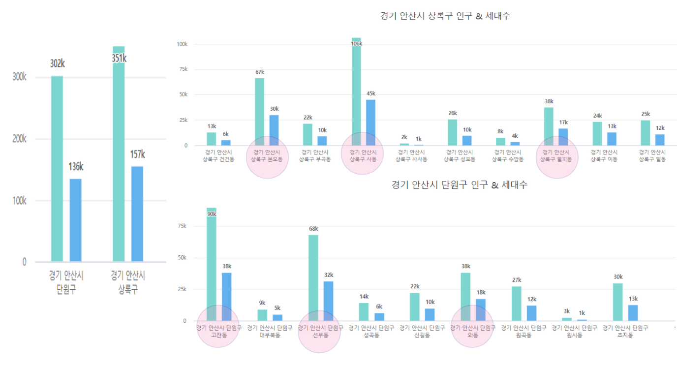 추가적으로 상록구가 35만명, 단원구가 30만명으로 상록구가 더 많이 거주하네요 !
