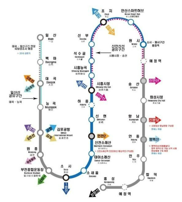 두번째로 서해선이 소사- 대곡선을 연장합니다.