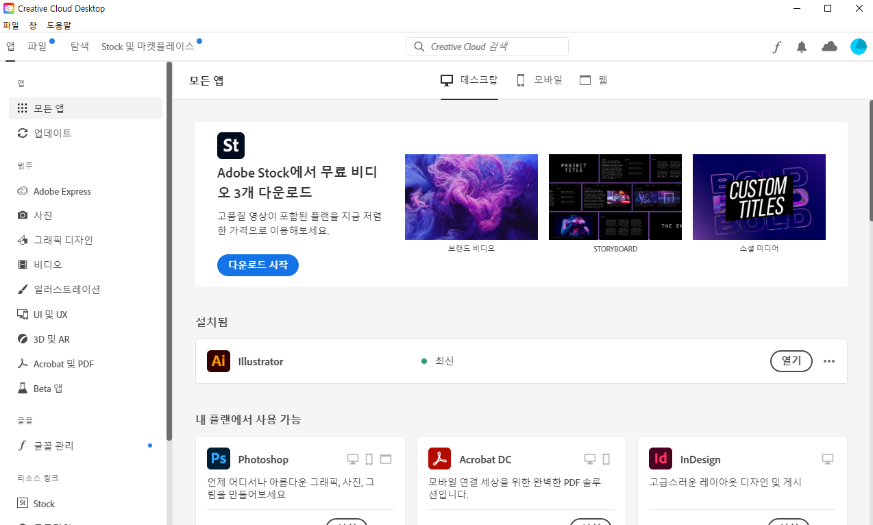 다시 어도비를 구독하고