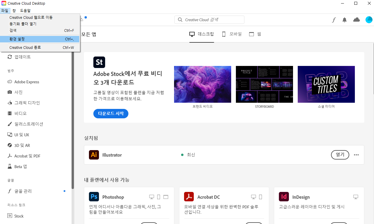 여기서 현재 저는 일러스트가 설치되어 있어서