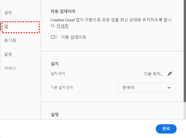 다시 크리에이티브 클라우드에서 설치 버튼을 눌러서 다시 설치해줍니다
