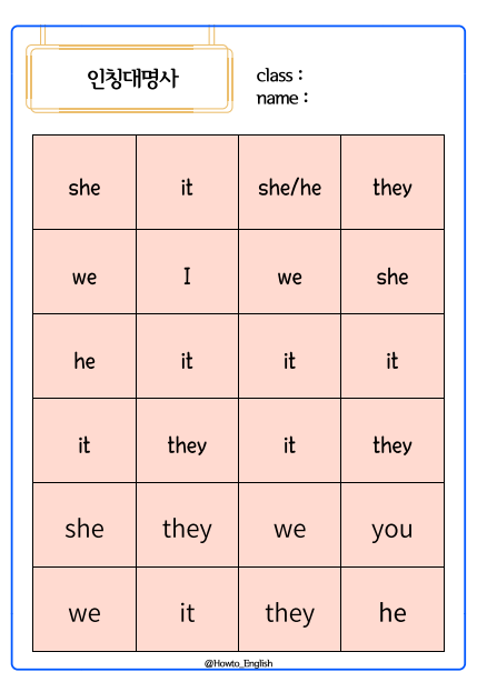 기존 단어표에 알맞은 인칭대명사를 올리는 활동입니다.