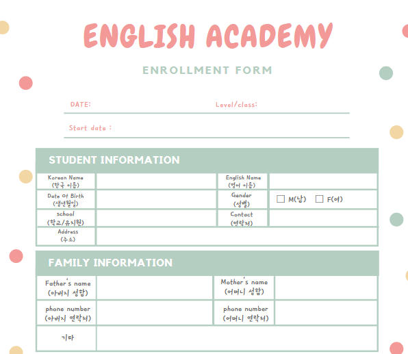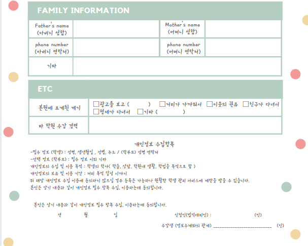최신 컨셉의 입학원서 양식을 공유해 드리려고 합니다.