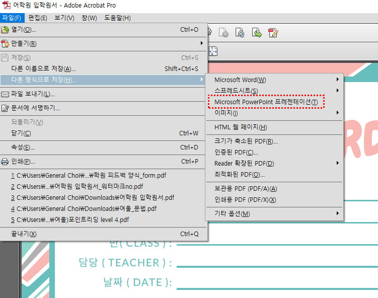아래 사진은 pdf를 다운로드후 파일 - 다른형식으로 저장 - ppt로 파일형식을 변형하시면