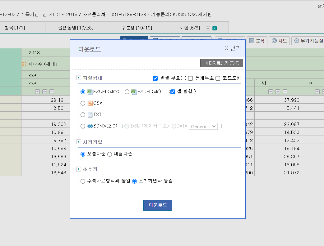 통계표 조회 - 다운로드