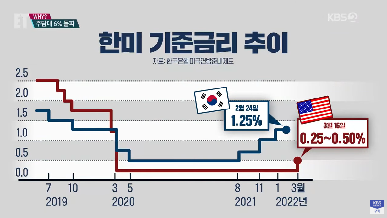 미국은 기준금리를 인상했는데 우리나라는 3차례 기준금리를 인상했습니다.