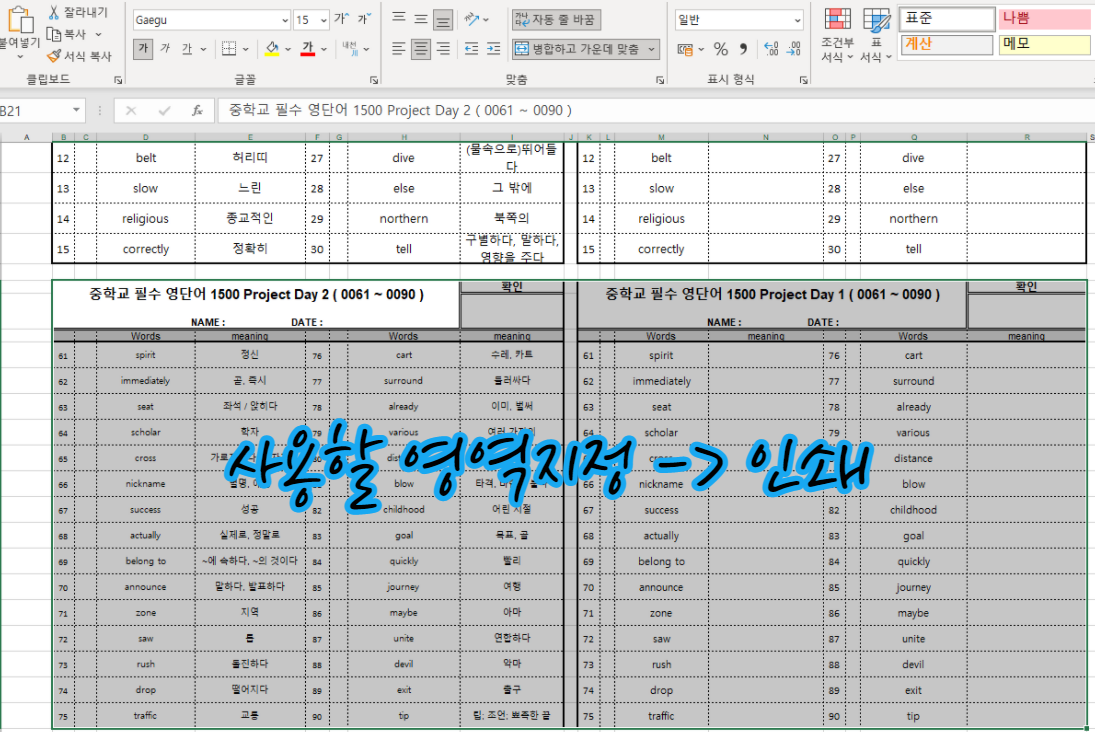 중학교기초 영어단어 1500개 학습지 시험지 파일 다운로드