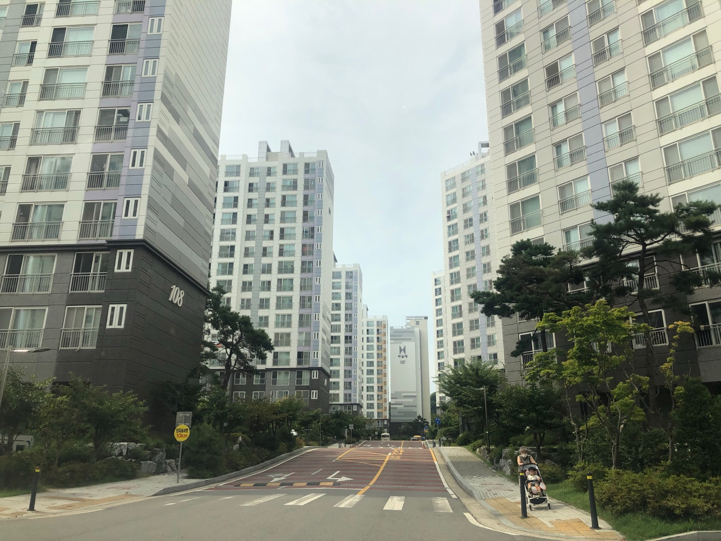 신축인데도 아파트 내에 차가 다니는 곳은 많았다 ( 100프로 지하주차장 아님 )