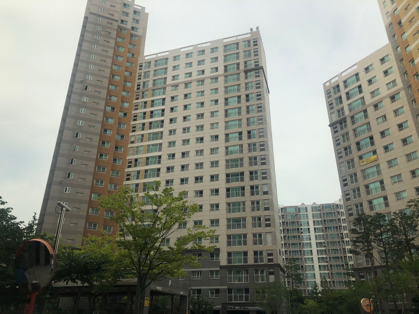 신축인데도 아파트 내에 차가 다니는 곳은 많았다 ( 100프로 지하주차장 아님 )