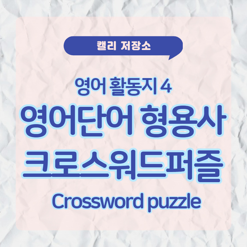 오늘은 학생들과 재밌게 할수 있는 크로스워드 퍼즐 워크시트 네번째 공유합니다.