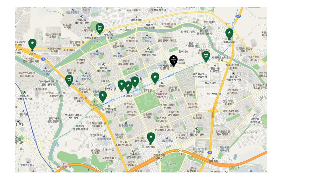 부천/일산외 다른 지역과 비교했을떄 전체적으로 가장 깔끔하고 정리가 잘 되있고 여유가 있어 보이는 지역인것 같았어요.