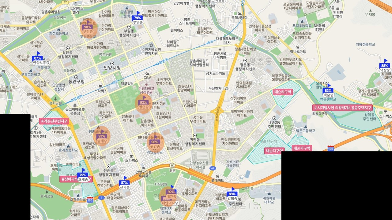 귀인동은 안양에서 역사에서부터 안양에 처음으로 사람이 살기 시작한 곳이라고 할만큼 주거지의 중심인거 같아 보였습니다. 특히 귀인중학교 학군은 이미 많이 들어서 꼭 가보고 싶었는데 아파트 단지도 깨끗하고 실거주를 많이하는곳같아 보였습니다.