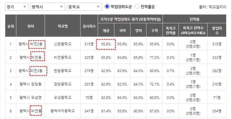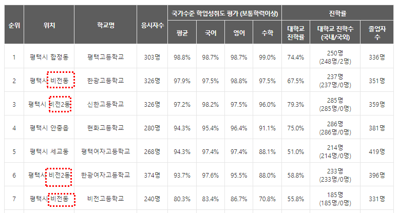 평택에 90%이상의 중학교와 평택고등학교도 구도심에 위치하고 있습니다.