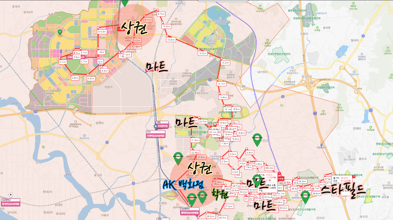 평택은 1호선은 기준으로 동쪽으로 발전되어있고 사람들의 주요 거주지 및 생활권이 형성되어 있었다.