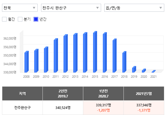 덕진구는 인구가 늘어나고 완산구는 줄어드는데도 완산구가 많네