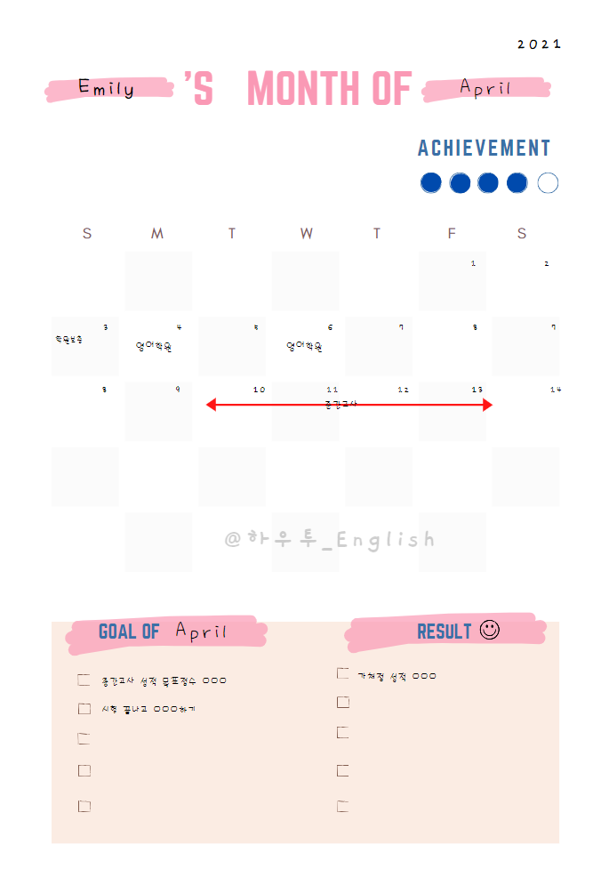 그리고 Result 칸은 그 달의 마지막에 나를 스스로 평가하는