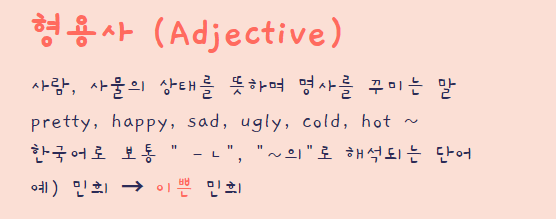 형용사는 앞서서 설명한 명사가 이쁜지 못생겼는지