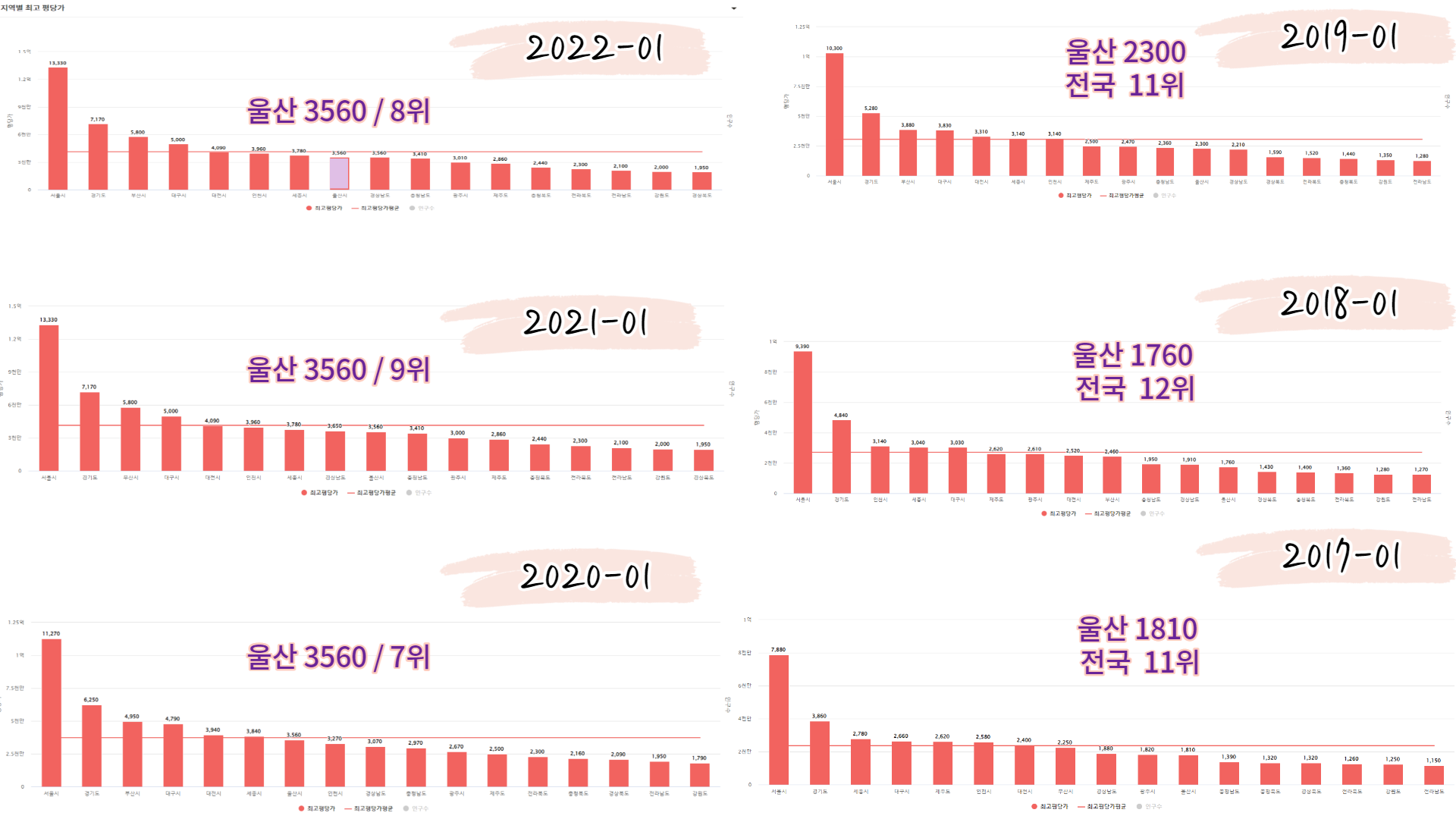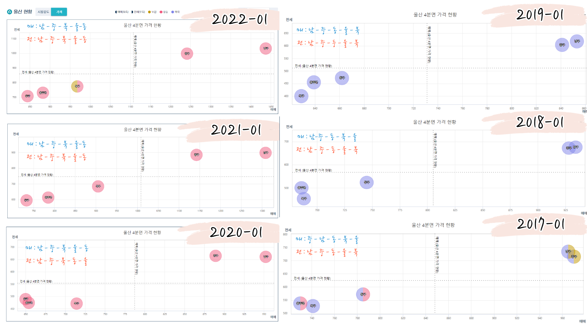가격은 남구-중구 / 동구-북구-울주군 을 묶어서 비교평가를 해보아야 할것 같다는 생각이 듭니다.