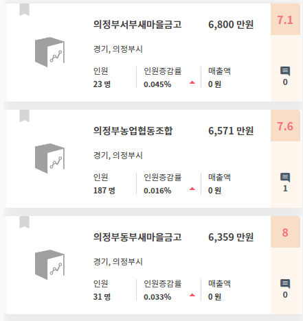 연봉순으로 보았을떄도 새마을금고가 1위 6800만원으로 나옵니다.