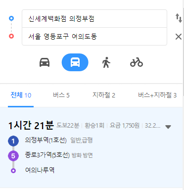 서울 주요 입지까지는 1시간~1시간 30분 정도 걸리며 강남역은 직행이 없어