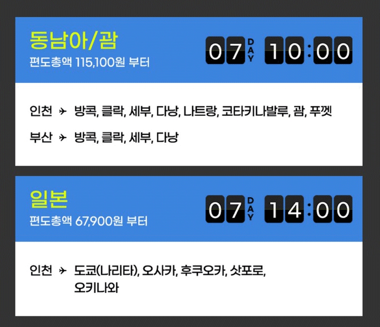동남아, 괌 노선은 오전 10시부터