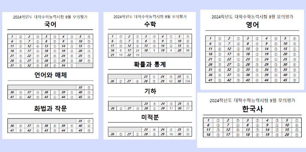 | 2024년 수능대비 9월 모의고사 정답 확인 해설지 (0) | 2023.09.15 |