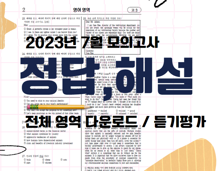23년도 7월 고3 모의고사 문제 문제풀기 24년도수능대비(듣기평가포함)