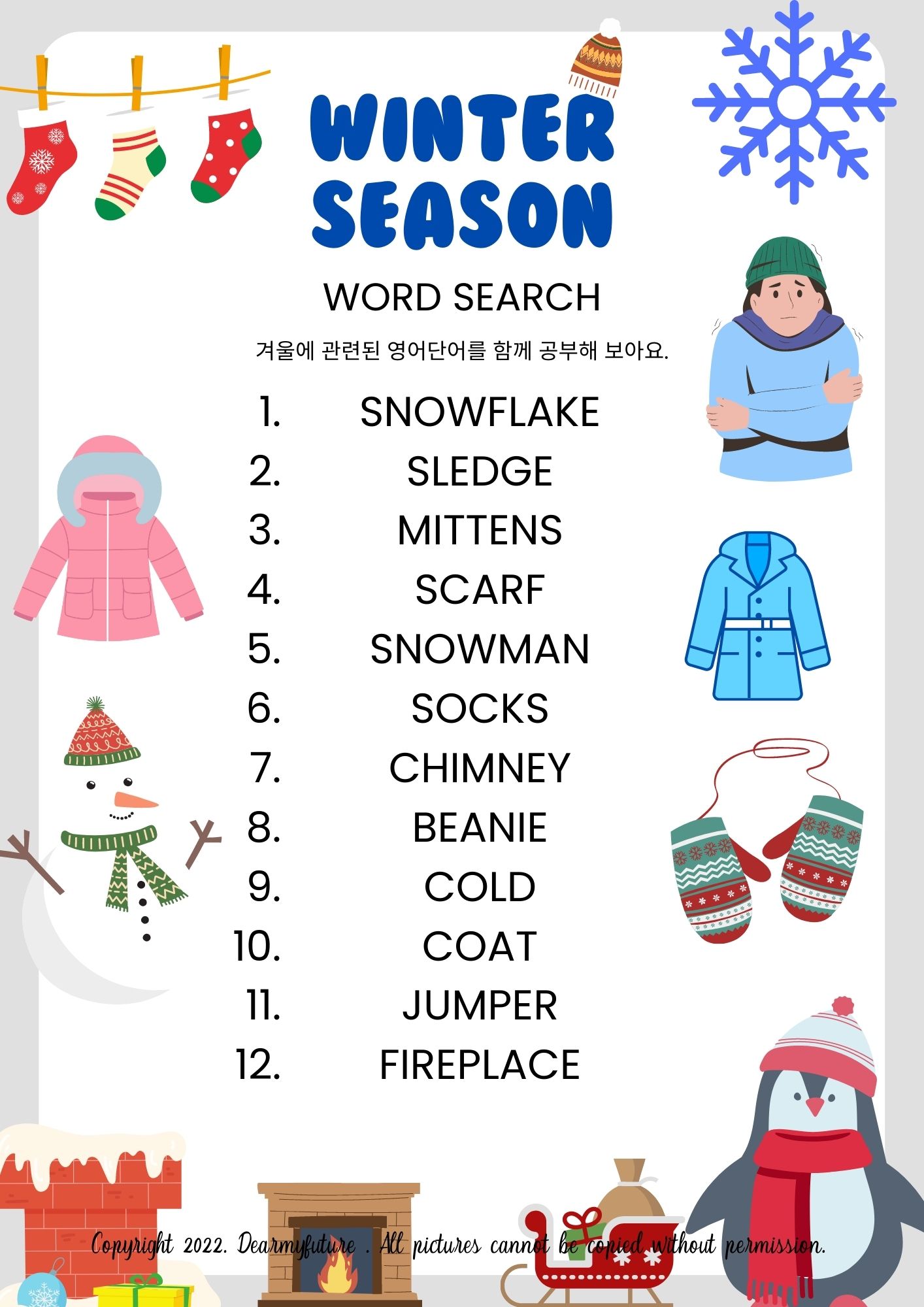 오늘은 겨울관련 영어단어 게임방법과 학습지를 안내드렸습니다.