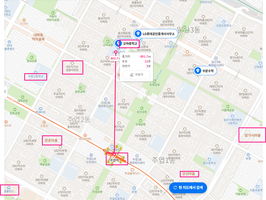 오마 오마 하는데 오마중학교가 학군이 좋고 문촌마을에 위치한다.