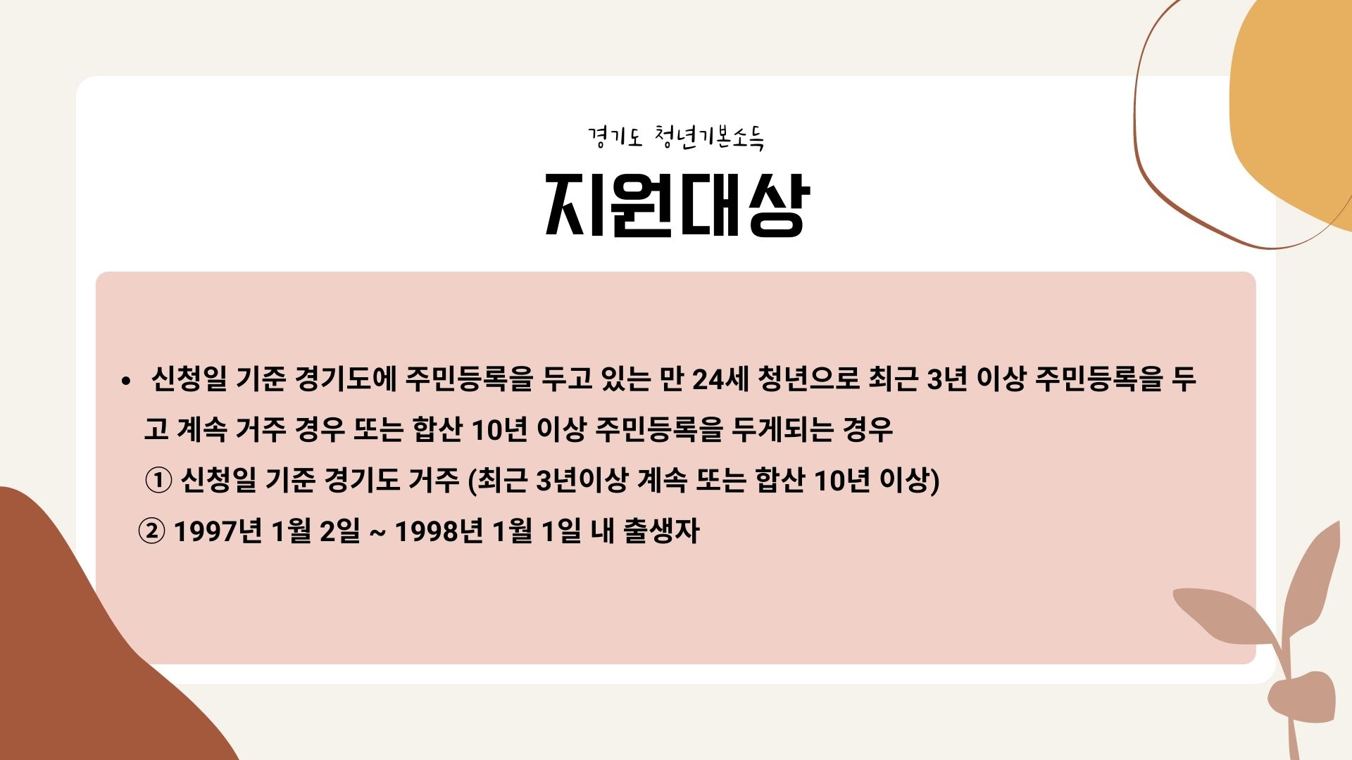 신청일 기준 경기도에 주민등록 즉, 주소지가 있는 24세 청년으로