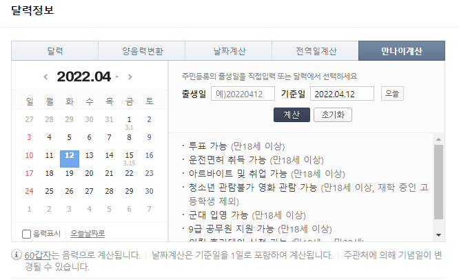만나이 계산기라고 검색하시면