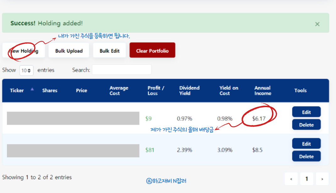 내가 가진 주식정보들을 저장해서 배당금 조회가 가능합니다.