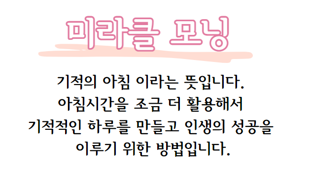 미라클 모닝을 처음 접하시거나 정확히 모르시는 분들을 위해