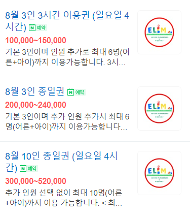서초 엘림동산은 주말 기준 3시간 이용 기준으로 10만원이며, 인원 추가 시 1만원씩 추가됩니다.