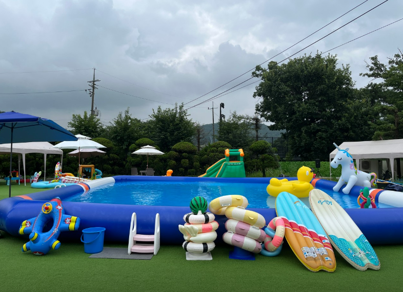 이 곳은 넓은 야외 놀이터와 80평 규모의 실내 놀이터가 있어서 물놀이와 모래놀이를 즐길 수 있습니다.