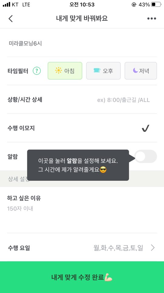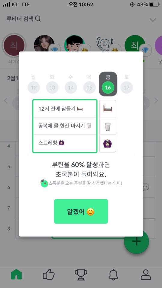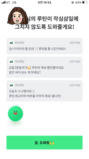 아래에 사진처럼 내가 설정한 루틴에 알림이 오고 수행했고 안했고에대해