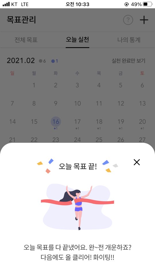 달력에 월별 일별로 설정한 목표 달성한 목표에 대해서도