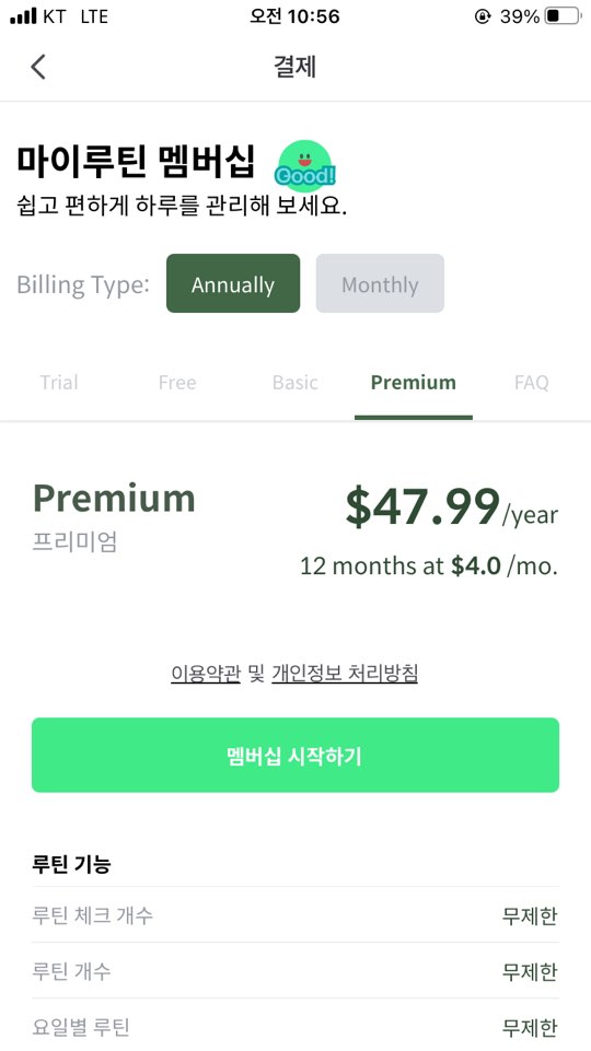 그로우나 weekly habit은 무료로 사용할수 있어서 부담없이 사용가능하고