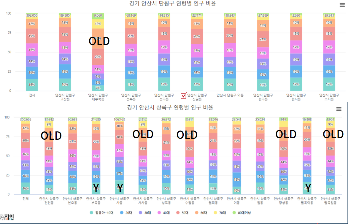 단원구에서 대부북동이 장년층이 가장 많고 나머지는 거의다 비슷합니다.