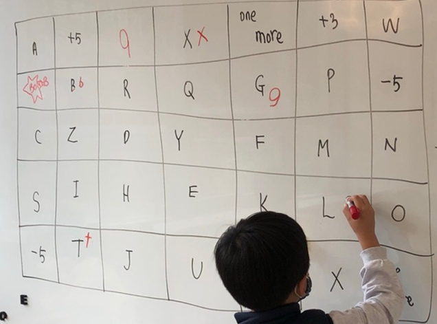 화이트 보드에 자유롭게 그리고 알파벳을 랜덤으로 적어줍니다.