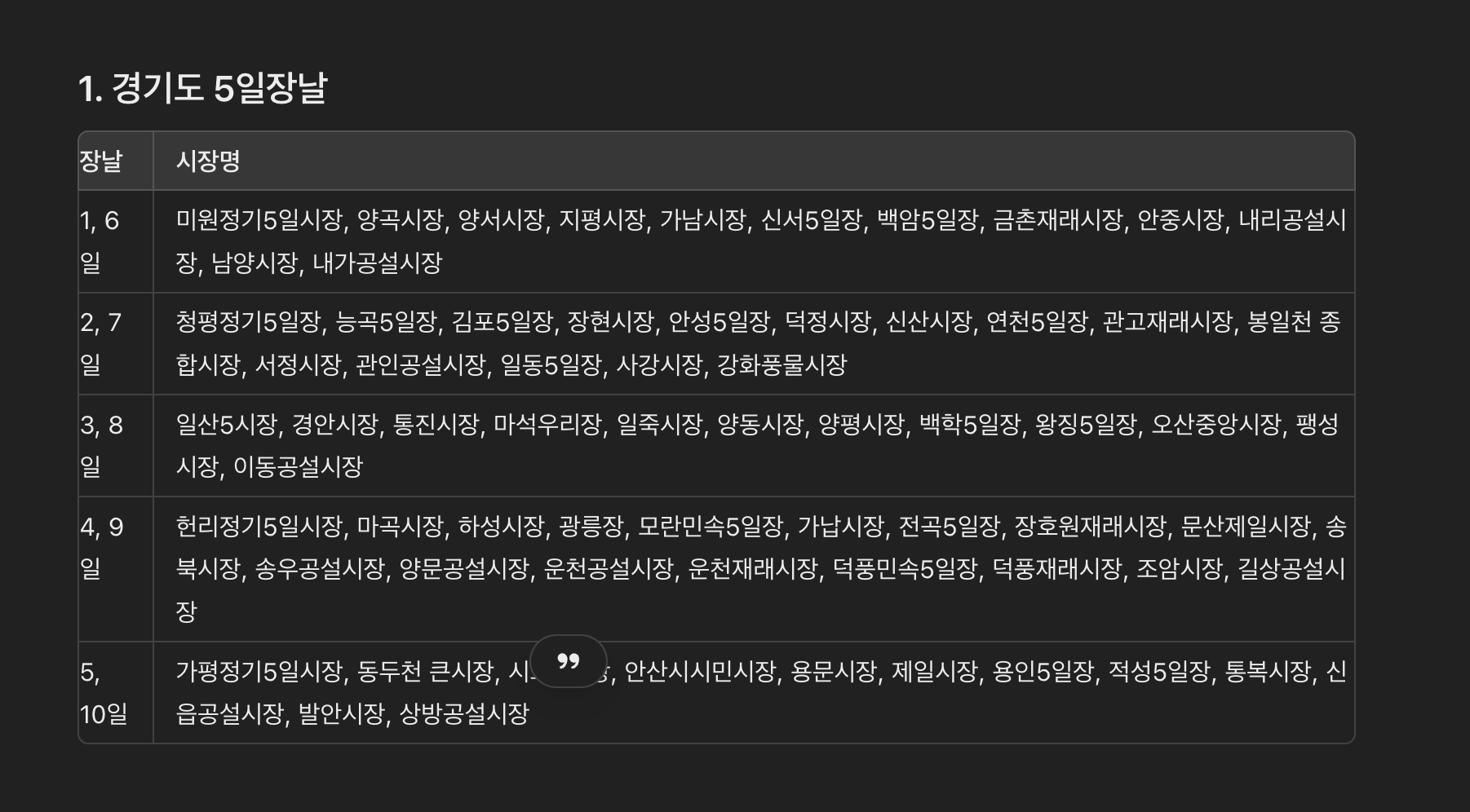 1. 경기도 5일장날
